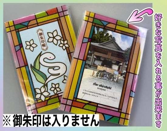 ステンドグラス調のデザインに白蛇様がいる可愛いデザインとなってます。